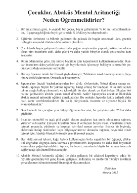 10. Abaküs Mental Aritmetik eğitimi ile daha gelişmiş bir zihinsel kapasiteye sahip birey-