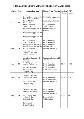 MENAR ABACUS MENTAL ARITMETIC PROGRAM SYLLABUS GUIDE