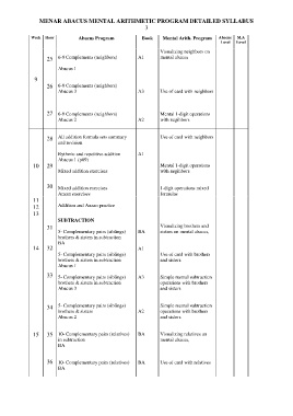 MENAR ABACUS MENTAL ARITHMETIC PROGRAM DETAILED SYLLABUS