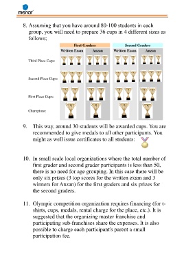 shirts, cups, medals, rental charge for the place, etc.). It is